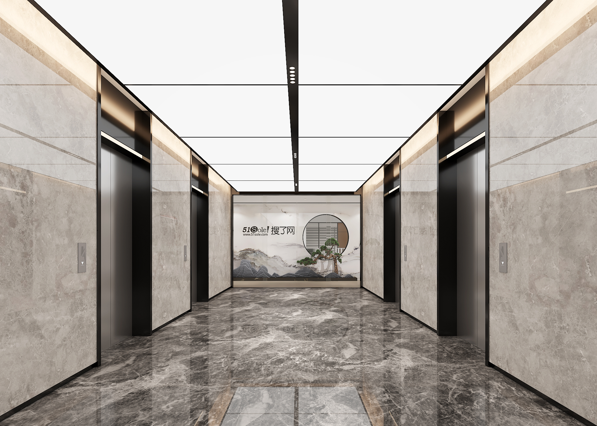 由電梯步入公司過程中的過渡空間也經過精心的設計,于細節(jié)處充分體現出對訪客的尊重。大理石的光澤度映襯出空間的輕奢氛圍感,展示氛圍燈補充了間接照明,將背景墻大理石細膩的紋理微微洗亮。不同的燈光層次塑造出張弛有度的空間節(jié)奏,加強了訪客從步入前臺即對公司產生良好的第一印象。