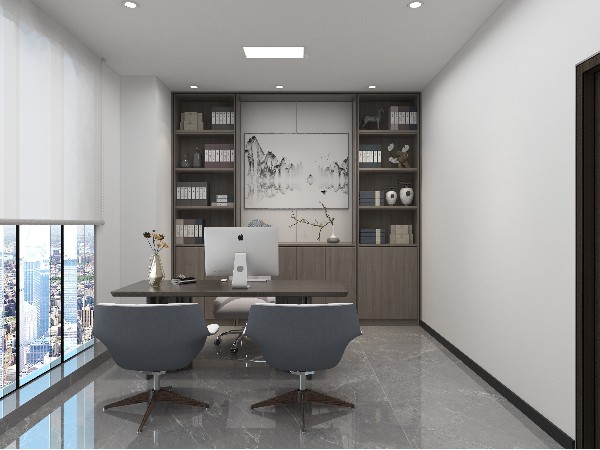 在總經(jīng)理辦公室裝修設計中,既有水墨畫、插花的藝術元素裝飾,也有符合現(xiàn)代簡約風格的辦公用具擺設,以及貼合人體工程力學的老板辦公椅。平衡的色系使人從視覺感官上感受到簡潔而干凈的裝潢風格。