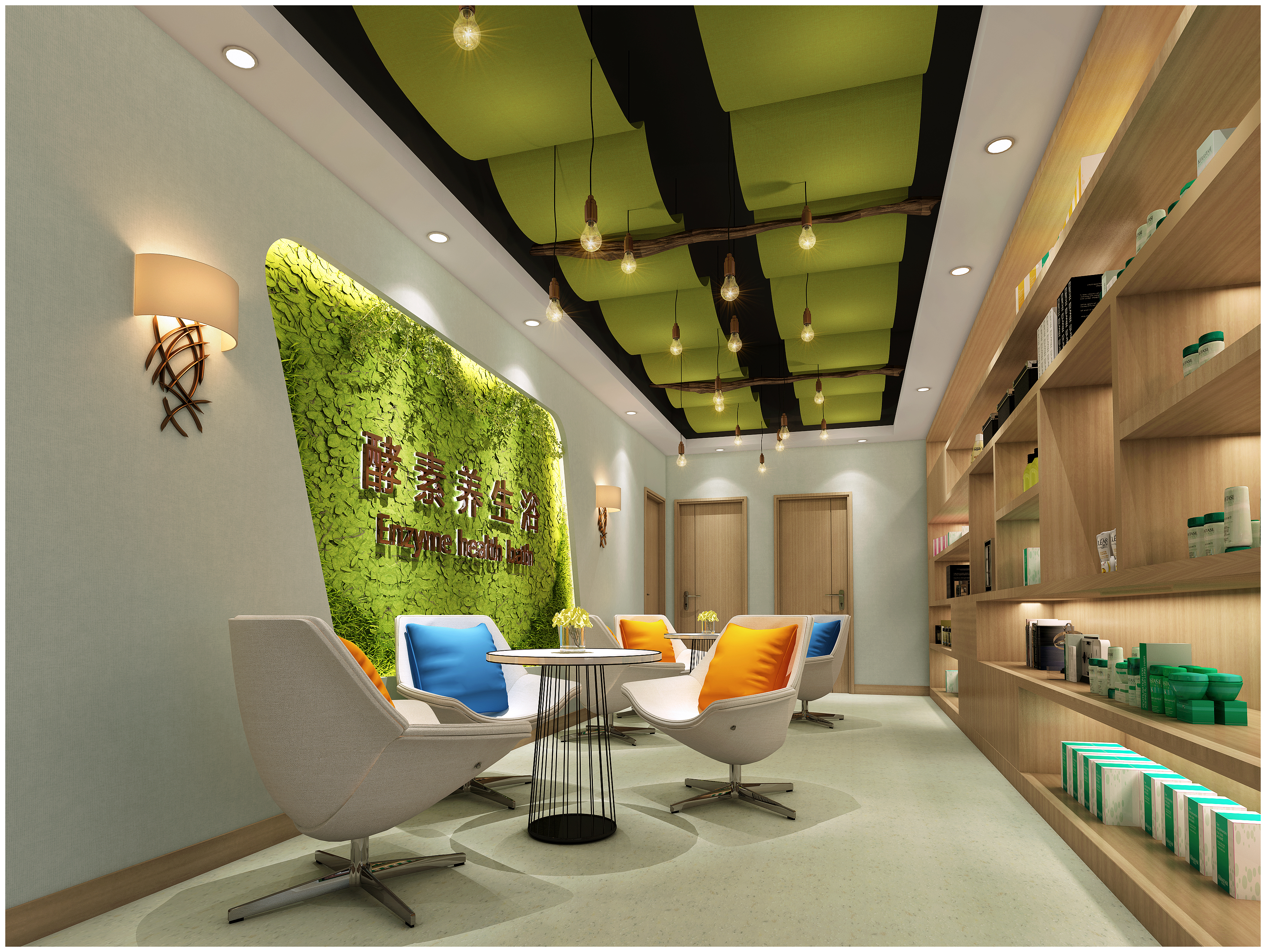綠色植物:在空間中適當(dāng)添加綠色植物,不僅可以起到裝飾作用,還能為顧客提供一個更加自然的養(yǎng)生環(huán)境。