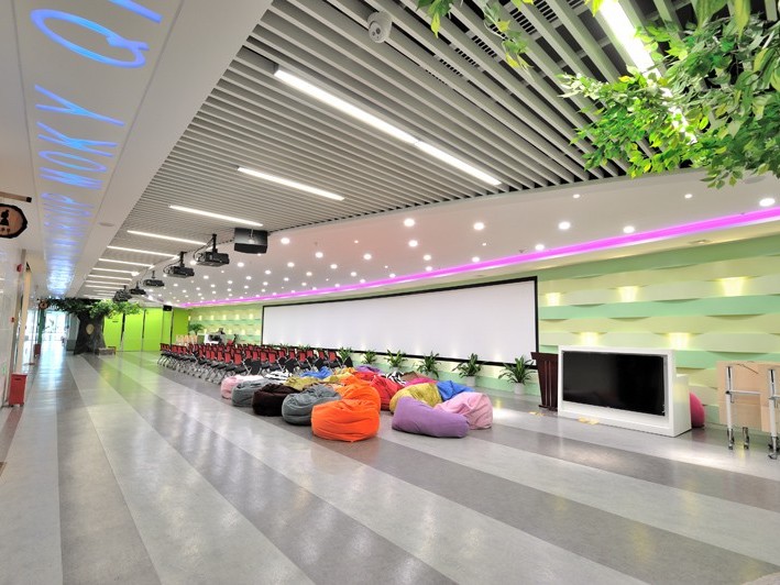 文豐裝飾的設(shè)計(jì)師在聽(tīng)完墨麟老板的一番話之后,下載了很多墨麟游戲,在游戲中尋找“快樂(lè)和價(jià)值”,充分地感受它們的含義。直到有一天,設(shè)計(jì)師想到要將游戲中的場(chǎng)景和人物搬到辦公室中,打造一個(gè)十足的游戲公司。為此,設(shè)計(jì)師不僅在網(wǎng)上找了很多游戲公司的室內(nèi)設(shè)計(jì),還在周末時(shí)轉(zhuǎn)進(jìn)各大游戲城中尋取靈感。最終將“生產(chǎn)價(jià)值,創(chuàng)造快樂(lè)”的理念植入了 辦公室裝修中。