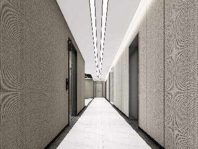 廊道的空間設(shè)計采用了減法的思路,在功能性上保證了干凈簡潔的環(huán)境條件。吊頂在細(xì)節(jié)上面也選擇了具有引導(dǎo)性的線性圖案設(shè)計,搭配低飽和的灰色調(diào),使過渡空間也相對具有輕奢感的統(tǒng)一風(fēng)格。