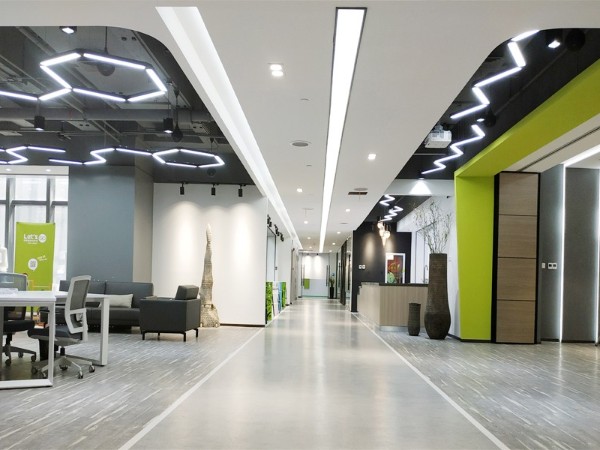 銀白色的空間會讓人感覺過于冷淡,沒有生命力。文豐設計師在其中加入綠色,充滿生命力的顏色不僅讓整個空間平添活力,還完成了生態(tài)與科技的結合。如此意境在這個空間還有一個更加絕妙的搭配:走廊的墻壁上有一顆銀白色和綠色裝點的“樹”,樹是綠色生態(tài)的象征,銀白色的科技感讓整個樹成功地融合整個辦公空間,更是成為生態(tài)與科技相結合的標志性符號。