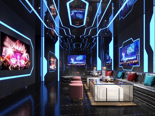 藍色燈光作為本次設(shè)計的核心元素,營造出一種炫酷、神秘的氣息。俱樂部內(nèi)部采用了多種燈具,如吊燈、壁燈和臺燈等,通過調(diào)節(jié)燈光的明暗和色溫,創(chuàng)造出一種別樣的氛圍。同時,燈光的設(shè)計還與俱樂部的裝飾風(fēng)格相得益彰,突出了現(xiàn)代感與時尚感。