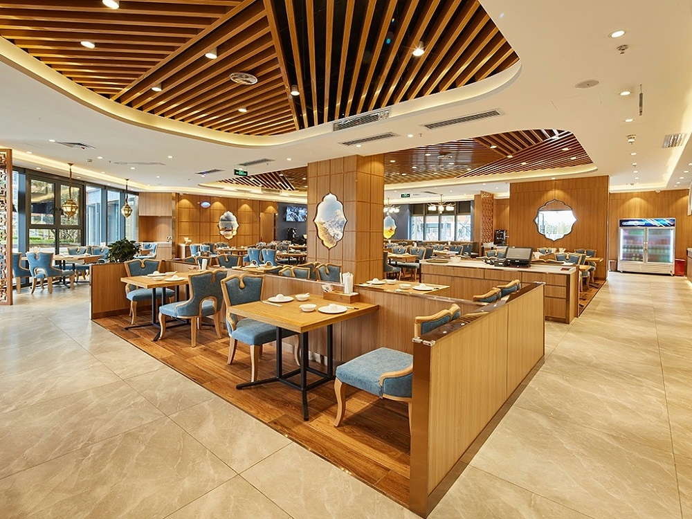 濃烈的色彩統(tǒng)一系列色調(diào)的裝飾,搭配西北特有的高原、白牦牛等元素壁畫,構(gòu)成別有風(fēng)味的裝飾藝術(shù)風(fēng)格,華麗的吊燈、窗前的簾幔富具民族特色,讓室內(nèi)的氛圍豪華又優(yōu)雅。在這里,濃郁的回族風(fēng)味,熱情的西北服務(wù)。真摯的民族情懷,為你而設(shè)。無(wú)論是邀友相聚,還是商務(wù)宴請(qǐng),都不失為一個(gè)理想去處。  深圳餐廳裝修實(shí)景圖
