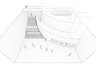這個(gè)區(qū)域通過(guò)直角墻的鏡面反射,使得空間呈現(xiàn)出一個(gè)圓形舞臺(tái)的既視感同時(shí),此區(qū)域除屏幕和鏡面外,全部采用啞光的材質(zhì)來(lái)提升整體的品質(zhì)感。