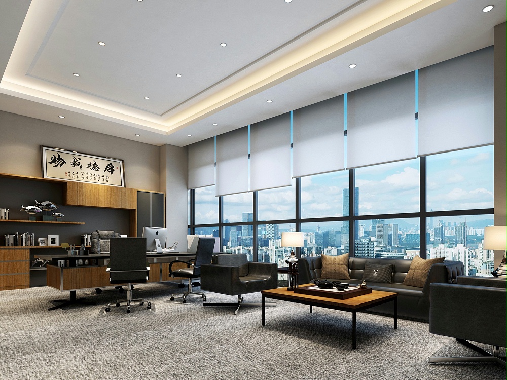 空間只是一個容器,它沒有任何情緒。只有人的存在,才給了空間以生命。設(shè)計師用不同的手法激發(fā)出每個空間的獨特性格。在董事長辦公室設(shè)計時,設(shè)計師重點在打造舒適、愜意的空間氛圍,同時在此基礎(chǔ)上增加空間的寧靜感,讓空間同時具有古風(fēng)與現(xiàn)代的雙重風(fēng)格,它們各司其職、互不干擾,又相互輔佐 ,而“厚德載物”牌匾更是起到點睛作用;整個空間從文化和管理的高度濃縮整個公司的企業(yè)形象與文化形象。